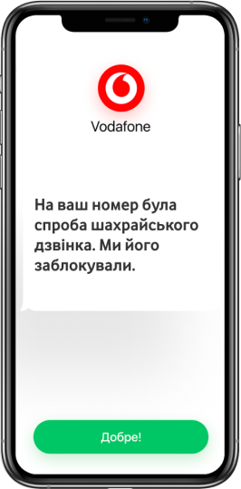 Якщо до Вас телефонує чи надсилає повідомлення абонент з номеру якого ймовірно здійснювались зловмисні виклики або надсилався спам, ми заблокуємо дзвінки та смс з цього номера та проінформуємо Вас про це у повідомленні з номеру “Vodafone”.